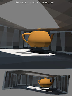 In keeping with a lot of the older posts on this blog I thought I'd write about the realtime GI system I'm using in a project I'm working on. It's a complete fresh start from the GI stuff I've written about previously. Previous efforts were based on volume textures but dealing with the sampling issues is a pain in the ass so I've switched to good old fashioned lightmaps. This is all a lot of effort to go to so why bother? The short answer is I love the way it looks. As a bonus it simplifies the lighting process and there's a subtlety to the end results that is very hard to achieve without some sort of physically based light transport. A single light can illuminate an entire scene and the bounce light helps ground and bind all the elements together.